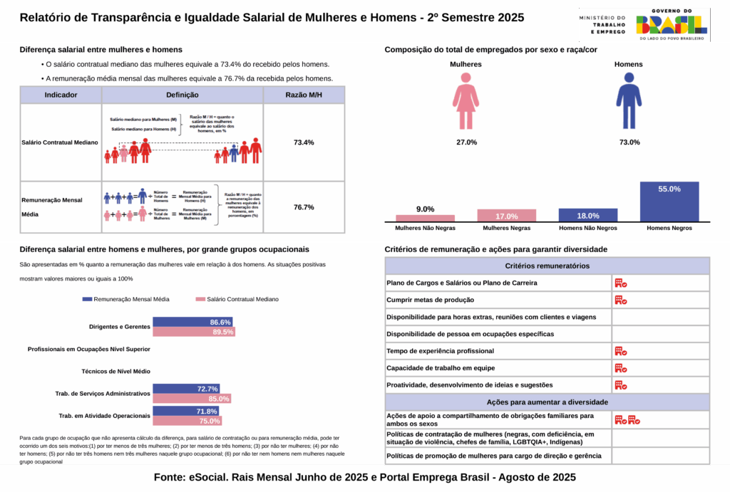 É importante destacar que, embora valorizemos as análises externas como o Relatório de Transparência Salarial e de Critérios Remuneratórios divulgado pelo Ministério do Trabalho e Emprego (MTE), entendemos que a metodologia utilizada possui limitações importantes.